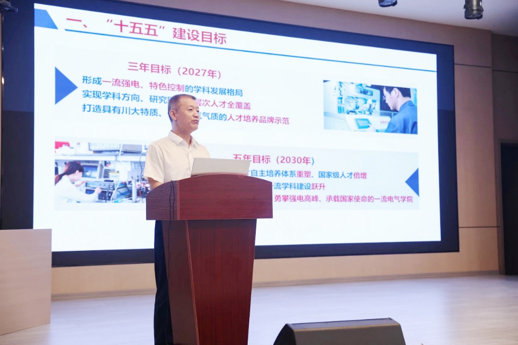 电气工程学院院长肖先勇向咨询理事会作报告,主要汇报了“十四五”特别是上届理事会以来的党建工作、人才培养、师资队伍、科研创新、社会服务等方面取得的主要成绩,系统分析了学院的发展现状及当前制约学院高质量发展的突出矛盾和主要短板,详细阐述了“十五五”思考谋划和下一阶段工作举措。